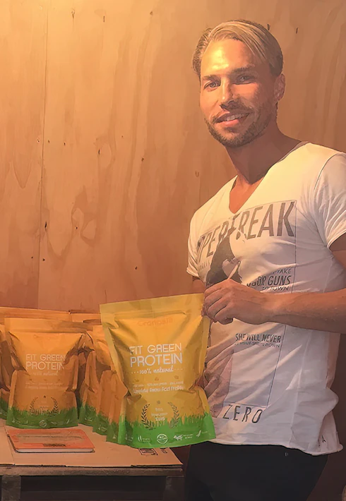 Après de nombreuses heures supplémentaires, des dizaines d’échantillons de test et des centaines de scoops, le premier sachet de protéines Orangefit® était devant nous. Le goût n’était pas encore aussi parfait qu’aujourd’hui, mais nous avions réussi. Nous avons été les premiers aux Pays-Bas à lancer un shake protéiné végétal et nous sommes toujours la seule marque avec une gamme 100 % végétale.