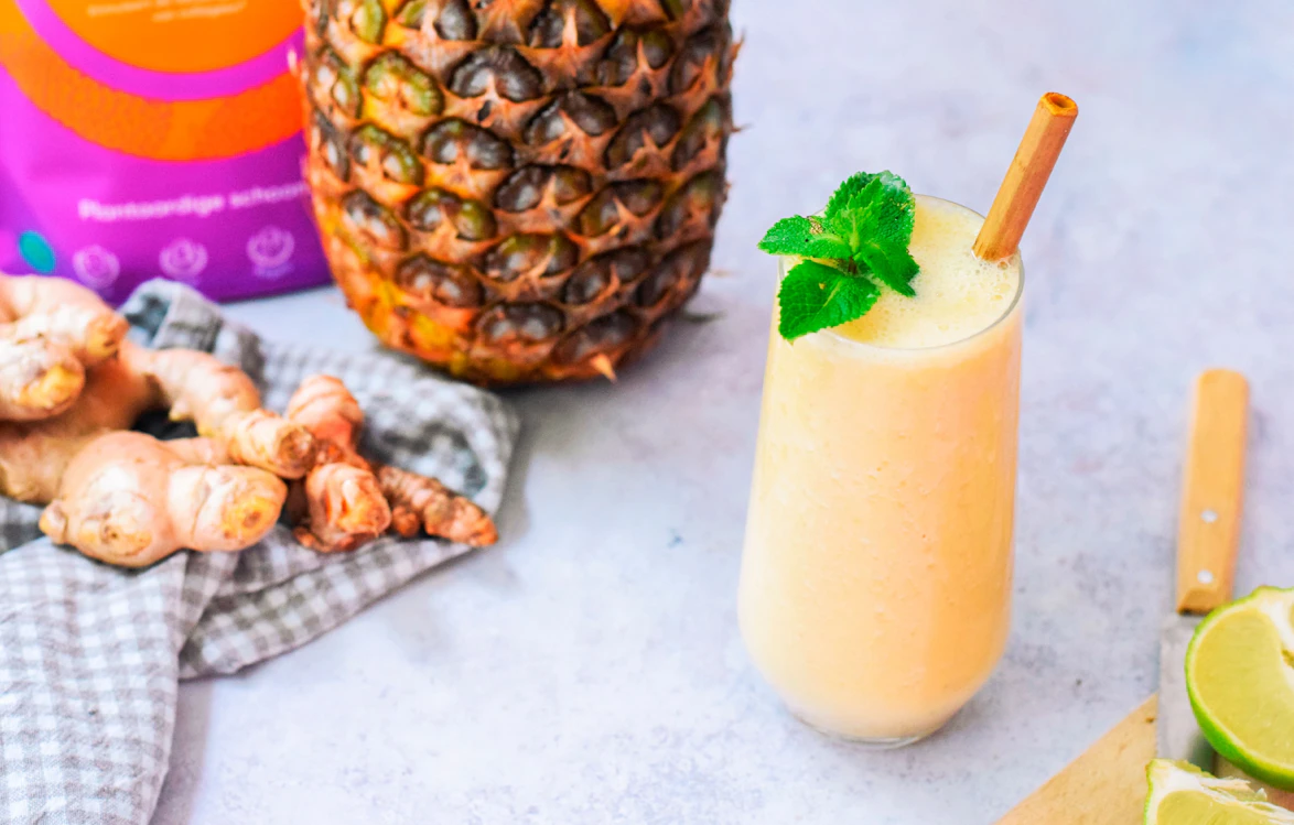 Nous pouvons enfin profiter du temps estival, et bien sûr, nous voulons partager avec vous dans les prochains jours quelques délicieuses recettes assorties. Et pour bien commencer, nous aimerions vous proposer ce délicieux smoothie estival à l'ananas riche en protéines!